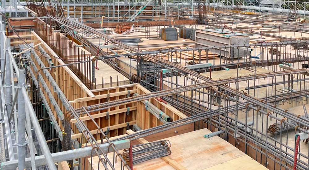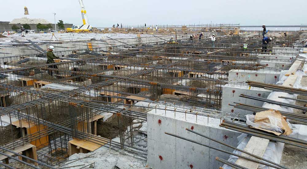 HOME 業務内容 型枠工事とは 主に鉄筋コンクリート(RC)構造物の建設において、コンクリートを流し込むための「型」を作り、その型を利用して所定の形に成型する工事です。この工事は、コンクリートが固まるまで型の形状を保持する役割を果たします。 型枠工事の流れ 拾い出し:施工図を基に、柱、梁、床、壁の寸法や形状を洗い出します。 加工:拾い出した情報を基に、型枠を作成します。主に使用される材料はベニヤ板です。 墨出し:現場で型枠を設置する位置を墨で示し、正確な位置を確認します。 建て込み:型枠を設置し、水平・垂直を確認しながら固定します。 コンクリート打設:型枠にコンクリートを流し込みます。この時、コンクリートの圧力に耐えられるように型枠はしっかりと固定されます。 型枠解体:コンクリートが固まり強度が出た段階で型枠を取り外します。 型枠工事の重要性 型枠工事は、建物の完成後にその強度や姿勢を保つ基礎の役割を果たすため、非常に精度が求められます。型枠が不適切だと、コンクリートが漏れる、ずれるといった事故が発生しやすくなります。そのため、高い技術力と経験が必要です。 鉄筋工事とは 鉄筋工事は建築物の構造を支える重要な工事です。この工事では、鉄筋を加工し、組み立てて建物の骨組みを形成します。建設の基盤となる重要な工程であり、建物の耐久性と安全性を支える大切な役割を担っています。 鉄筋工事の作業工程 (1) 加工帳や施工図の作 加工帳や施工図は、工事の品質と効率を確保するための基本的なツールです。加工帳には、使用する鉄筋の種類、サイズ、数量などが詳細に記載されており、施工図は実際の工事現場での鉄筋の配置や施工方法を示します。さらに、これらの書類は工事関係者全員が共有し、共通の理解を持つことが求められます。 (2)鉄筋の加工 土木工事や建築工事において、鉄筋は正確に加工され、適切に運搬される必要があります。まず、鉄筋の加工では、設計図に基づいて正確な寸法に切断し、必要な形状に曲げます。 (3) 現場への運搬 加工された鉄筋は現場に運搬されます。 (4)配筋・段取り まず、構造物の設計図を確認し、必要な鉄筋の種類、直径、配置、間隔などを把握します。その後、設計図に基づいて、鉄筋を所定の位置に配置します。 段取りは、配筋作業を効率的に進めるための準備作業です。材料の準備、作業環境の整備、作業手順の確認などを行います。 (5)篏合 嵌合(かんごう)は、鉄筋同士をしっかりと結びつけるための技術であり、正確な位置合わせと密接な接合が求められます。 (6)結束 結束は鉄筋を固定するために行われる作業で、専用の結束線や結束工具を使用します。結束の際には、結束線の適切な締め加減と均等な配置が求められます。過度な締め付けは鉄筋を損傷させる可能性があるため、細心の注意が必要です。 (7) 自主検査 自主検査を行うことで、設計図や施工基準に適合しているかを確認し、問題が発生する前に早期に対処することが可能となります。 施工管理計画の立て方 プロジェクトの理解 設計図面や仕様書を詳細に確認し、プロジェクトの要件や目的を把握する 工程のスケジュール作成 鉄筋の加工、組立て、検査など、全ての工程に対してスケジュールを作成する 必要な資材の計画 必要な材料、機械、作業員の数を計画し、適切に手配する 品質管理計画 鉄筋工事の品質を確保するための基準や検査方法を設定し、品質管理体制を整える 安全対策計画 作業中の安全確保のため、リスクアセスメントを行い、安全対策を計画する