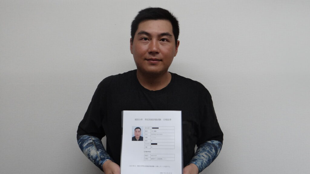 今年2月に【特定技能2号評価試験】を合格し、特定技能2号への在留資格変更申請をしておりましたが、無事に申請がおり、社内では2人目となる『特定技能2号』が誕生いたしました。